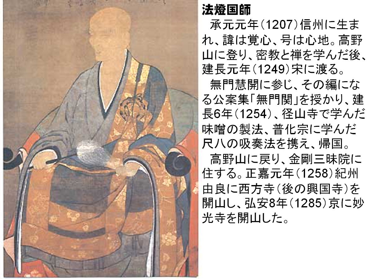 『無門関』第1則に、無の字の関を透った者は、「歴代の祖師と手を把って共に行き、眉毛̪厮結んで同一眼に見、同一耳に聞くべし。豈に慶快ならざらんや。」と述べられているが、この文句を捩っていえば、法燈国師と一遍上人、共に「手を把って共に行き、眉毛̪厮結び」、同一口に南無阿弥陀仏と称え、共に「慶快」なりであったであろう。