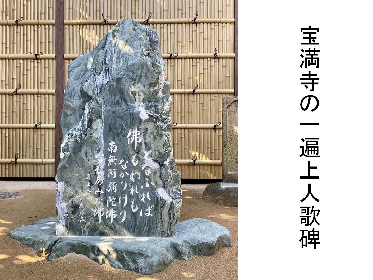 一遍上人の「となふれば仏もわれもなかりけり南無阿弥陀仏なむあみだ仏」の歌を聞いて、法燈国師は印可の証として一遍上人に手巾・薬籠を与えたという。
