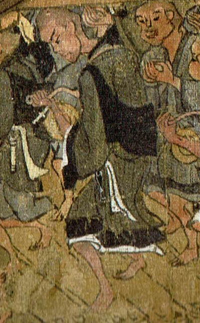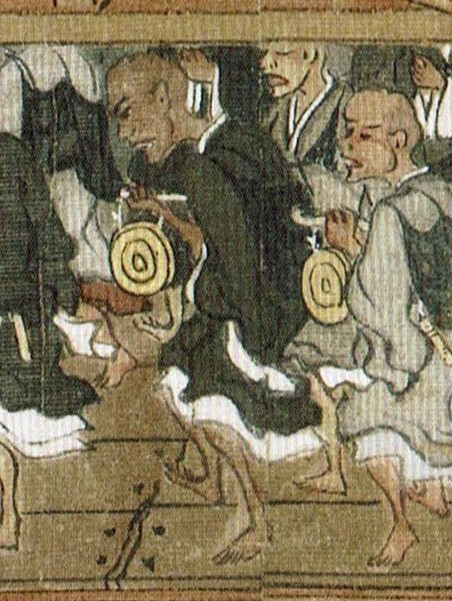 『一遍聖絵』では、初めて踊り念仏を踊る様子が描かれた信州小田切の里の場面でも、また初めて踊り屋で踊り念仏を踊る様子が描かれた鎌倉郊外の片瀬の浜の場面でも、また最大の踊り屋で最大の盛り上がり見せた京の都の市屋の場面でも、いずれも踊る一遍上人の腰では手巾が踊っているところが描かれている。それは、あたかも一遍上人の「遊戯三昧」の躍動が具象化しているようにみえはしないだろうか。