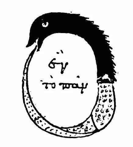 ウーロボス(マルキアヌス古写本) ギリシャ文字で「一即一切」と記されている