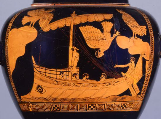 紀元前5世紀の壺絵にはその場面が描かれている。オデュッセウスは耳を塞がれた部下の漕ぎ手たちに言葉で指示しても漕ぎ手たちには聞こえないし、マストに縛られていてはジェスチャーによって漕ぎ手たちに指示することもできない。オデュッセウスは、部下の舵取り人(kybernētēs)に目配せの信号によって指示し、舵取り人は漕ぎ手たちに身振りの信号によって指示をだしたのであった。このような信号による指示系統はすでにサイバネティック(cybernetic)なシステムであったといえよう。このようなサイバネティックなシステムの内に於いては、セイレーンはその呪術的力を喪失し、死ぬ運命にあったのである。